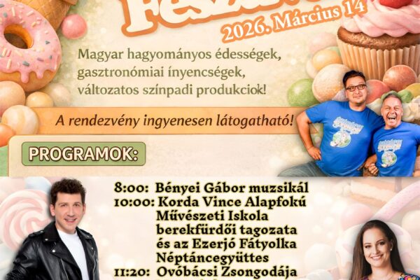 Tavaszi Édes Fesztivál Berekfürdőn 🗓️ Időpont: 2026. március 14. 📌 Helyszín: Berekfürdő, Rendezvénytér 💸 Belépés: INGYENES Program08:00 – Bényei Gábor muzsikál10:00 – Korda Vince Alapfokú Művészeti Iskola berekfürdői tagozata és az Ezerjó Fátyolka Néptáncegyüttes11:20 – Ovóbácsi Zsongodája13:10 – Megnyitó13:15 – Retro műsor az Operett Musical Voices társulattal14:30 – Vastag Tamás kis zenekaros koncertje15:40 – Tombola17:00…