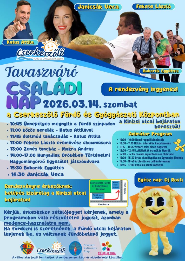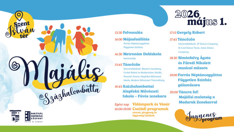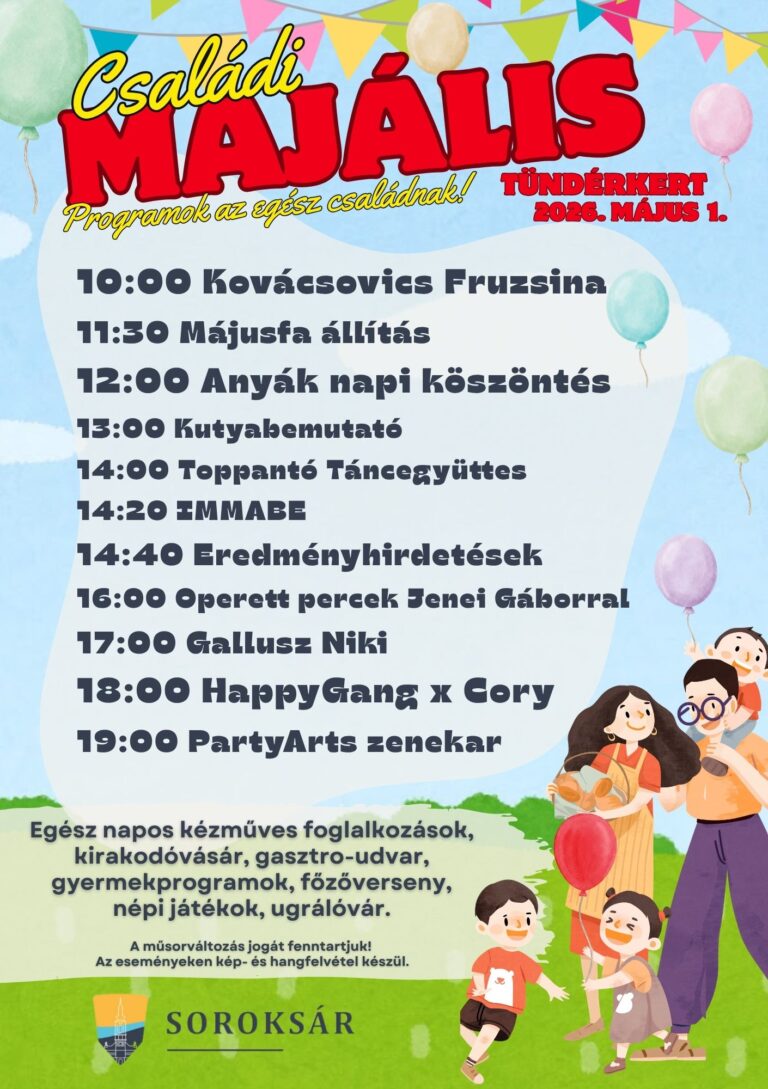Esztergom napok: Ingyenes családi programok a Széchenyi téren – Május 1–3. Időpont: 2026. május 1–3. Helyszín: Széchenyi tér A rendezvény látogatása mindenki számára ingyenes! Részletes Programbontás Május 1. (Péntek) 11:00 – Kiskalász Zenekar 12:30 – Badár Tamás bűvész előadása 15:00 – Kvíz Show 17:30 – Jóvilágvan 20:00 – 4S Street Május 2. (Szombat) 11:00 –…