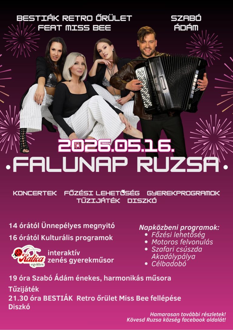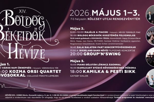 Boldog Békeidők Fesztivál Hévízen – Majális Hévíz Program 2026 🗓️ Időpont: 2026. május 1. – 3. 📌 Helyszín: Hévíz 💸 Belépés: INGYENES Időutazás a századforduló eleganciájába zene, tánc és hagyományok Hévíz szívében Hévíz ismét a békeidők hangulatába öltözik: három napon át a múlt század eleganciája, a klasszikus dallamok és a közösségi élmények kerülnek a középpontba. A város…