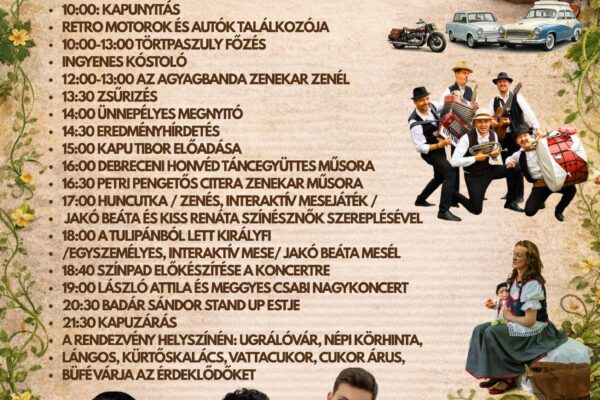 Törtpaszuly Feszt Vaja Program 2026 🎶 🎤 🗓️ Időpont: 2026. május 9. 📌 Helyszín: Vaja, Vay Ádám Múzeum kertje 💸 Belépés: INGYENES Részletek a plakáton! Kép forrás: Facebook események