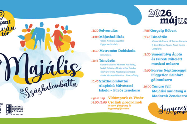 Majális Százhalombatta Program 2026 🗓️ Időpont: 2026. május 1. 📌 Helyszín: Százhalombatta, Szent István tér 💸 Belépés: INGYENES Felvonulás, májusfaállítás, látványos fellépők, zene, tánc, vásár, vidámpark és családi programok várják az érdeklődőket a Városi Majálison Százhalombattán. A nap zárásaként pedig igazi közös ünneplésre hívjuk a közönséget:20.00 órától TÁNCRA FEL! – Majálisi mulatság a Madarak Zenekarral! …