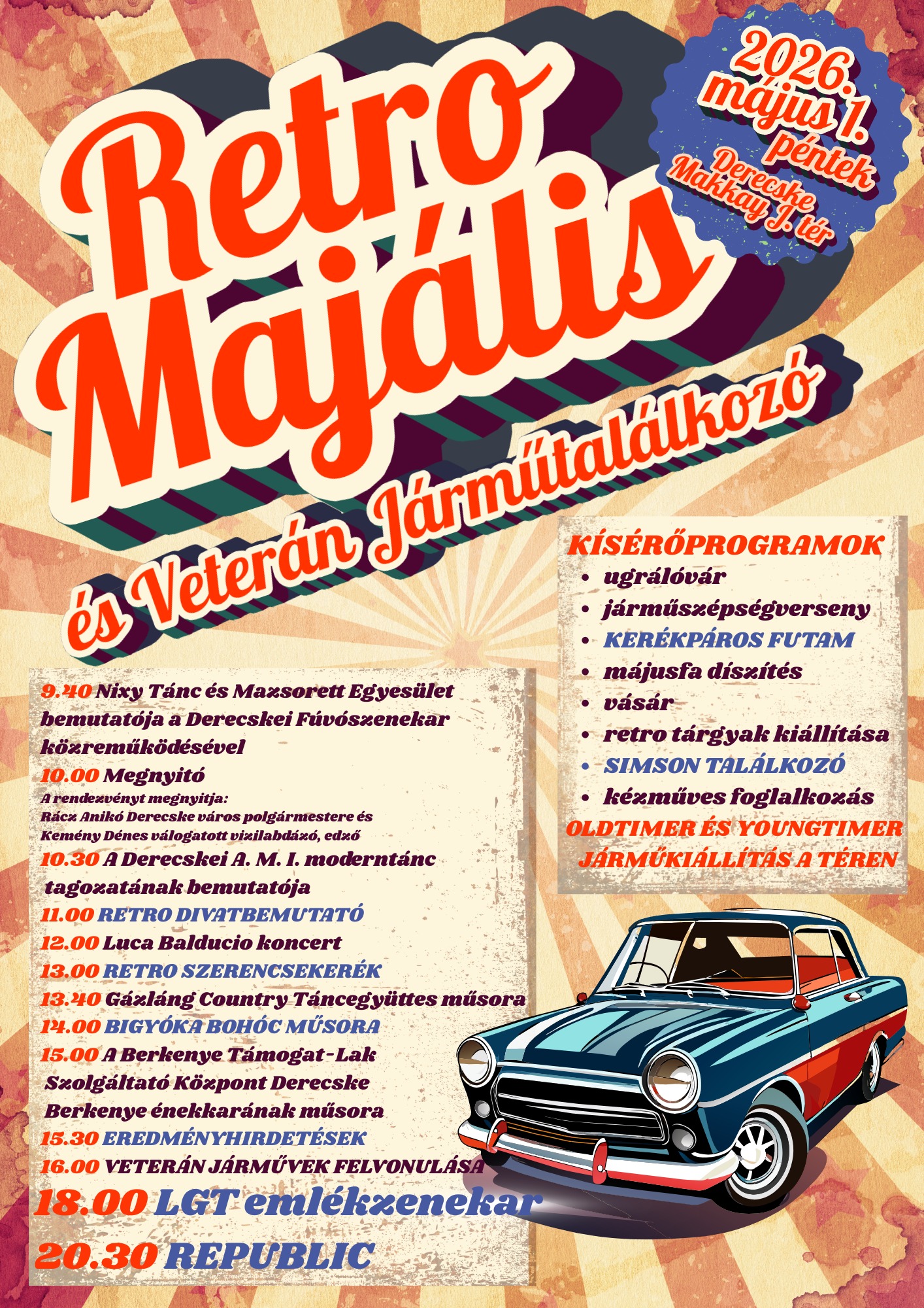 Családi programokGyerekprogramokHajdú-Bihar megyeKoncertekMajálisProgramokMajális Derecske – Republic, LGT Emlékzenekar ADMIN2 nap ezelőtt2 nap ezelőtt01 mins Majális Derecske Program 2026 🎶 🎤 🗓️ Időpont: 2026. május 1.📌 Helyszín: Derecske, Makkay J. tér💸 Belépés: INGYENESRészletek a plakáton!Kép forrás: Facebook események Nézd meg hol lép fel a kedvenc zenekarod (országosan): Keresés: Zenekarok :4S Street Alma együttes Animal Cannibals Apacuka zenekar Augusztusi programok Bikini Bon-Bon Bódi Csabi Decemberi programok Desperado DJ Dominique Dj Szatmári Dánielfy Gergő Dér Heni Február Fehér Krisztián Groovehouse Gudics Máté Happy Gang Hooligans Horváth Tamás Irigy Hónaljmirigy Iszkiri Josh és Betti Június Kalap Jakab Korda György és Balázs Klári Kovácsovics Fruzsina Kozmix Krisz Rudi MAGNA CUM LAUDE Mihályfi Luca Május Neoton Família New Level Empire Novemberi programok Nótár Mary Oláh Gergő Péter Sramek Rúzsa Magdi Soltész Rezső Szabó Ádám Szeptemberi programok V-Tech Varga Viktor Bejegyzés navigáció Előző: Majális Bátaszék – Dupla Kávé koncertKövetkező: Majális Ajka 2026