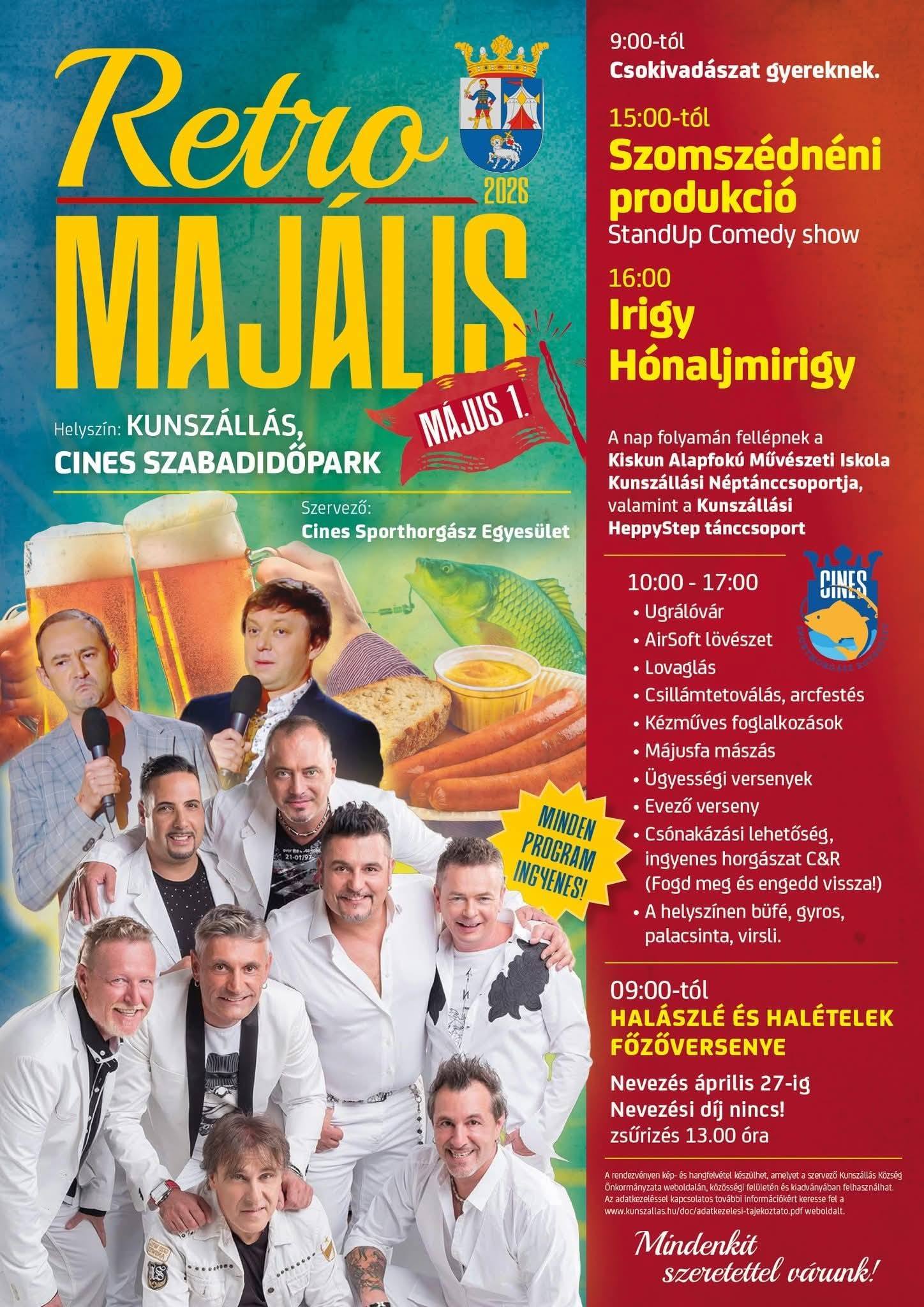 Bács-Kiskun vármegyeCsaládi programokGyerekprogramokKoncertekMajálisProgramokMajális Kunszállás – Ingyenes Irigy Hónaljmirigy koncert ADMIN2 nap ezelőtt2 nap ezelőtt01 mins Majális Kunszállás Program 2026 🎶 🎤 🗓️ Időpont: 2026. május 1.📌 Helyszín: Kunszállás, Cines Szabadidőpark💸 Belépés: INGYENESRészletek a plakáton!Kép forrás: Facebook események Nézd meg hol lép fel a kedvenc zenekarod (országosan): Keresés: Zenekarok :4S Street Alma együttes Animal Cannibals Apacuka zenekar Augusztusi programok Bikini Bon-Bon Bódi Csabi Decemberi programok Desperado DJ Dominique Dj Szatmári Dánielfy Gergő Dér Heni Február Fehér Krisztián Groovehouse Gudics Máté Happy Gang Hooligans Horváth Tamás Irigy Hónaljmirigy Iszkiri Josh és Betti Június Kalap Jakab Korda György és Balázs Klári Kovácsovics Fruzsina Kozmix Krisz Rudi MAGNA CUM LAUDE Mihályfi Luca Május Neoton Família New Level Empire Novemberi programok Nótár Mary Oláh Gergő Péter Sramek Rúzsa Magdi Soltész Rezső Szabó Ádám Szeptemberi programok V-Tech Varga Viktor Bejegyzés navigáció Előző: Majális Soroksár – Kovácsovics Fruzsina, Happy Gang, Gallusz NikiKövetkező: Majális Szegvár – Csordás Tibi Fiesta, Kabai Alex
