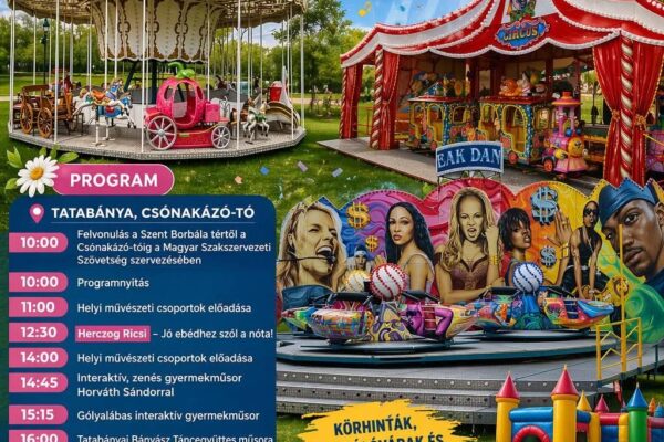 Tatabánya Majális Program 2026 🗓️ Időpont: 2026. május 1. 📌 Helyszín: Tatabánya, Csónakázó-tó 💸 Belépés: INGYENES Részletek a plakáton! Kép forrás: Facebook események
